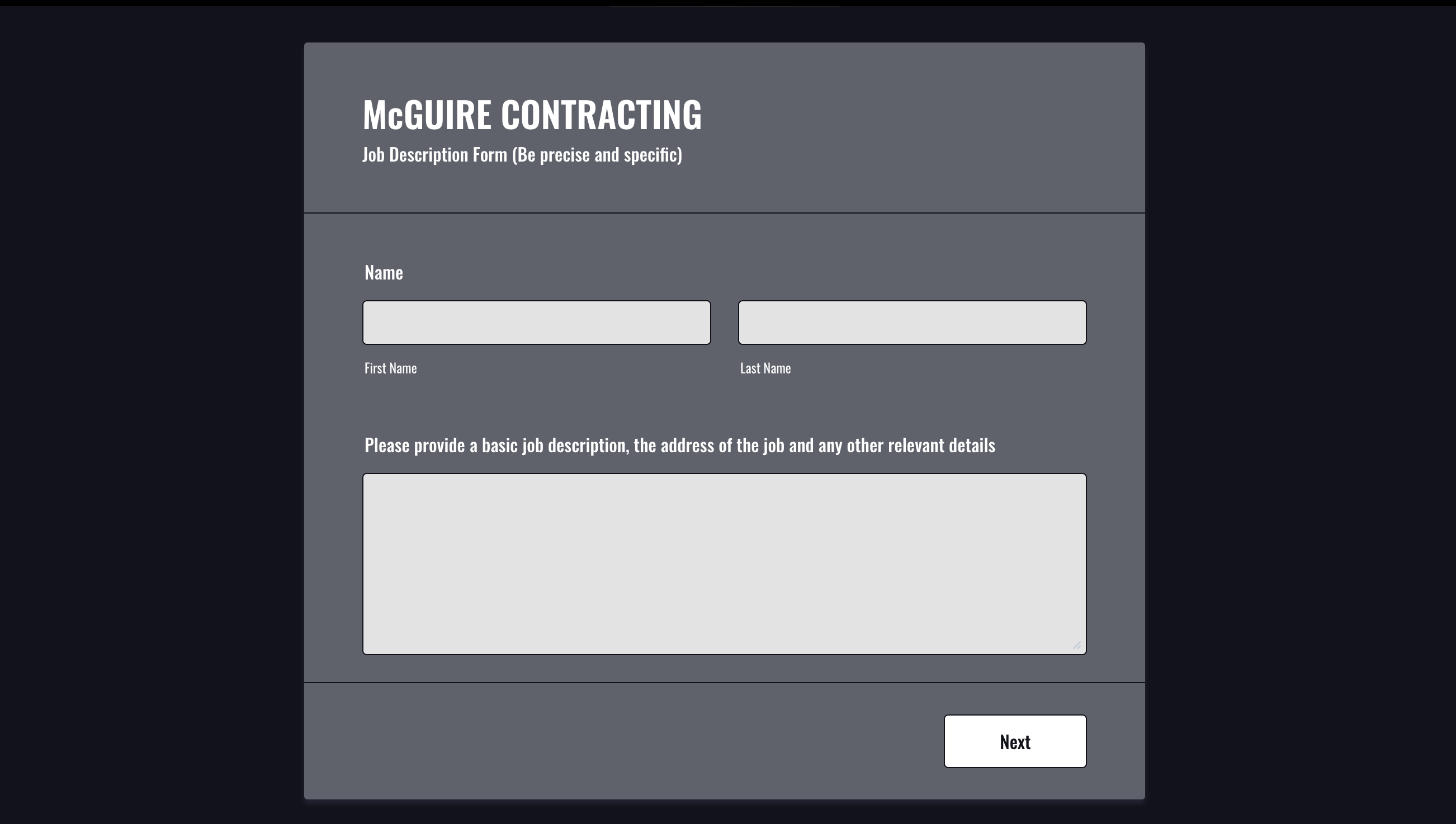 McGuire Contracting is a builder that specializes in decks, fences and residential framing. They are committed to delivering quality workmanship with a personal touch. McGuire Contracting was looking to enhance their online presence and workflow. We updated their website with consistent branding, images and contact forms. To enhance their workflow, we designed a custom form that allows contractors and employees to input job specific information, including an online drawing tool and picture upload.