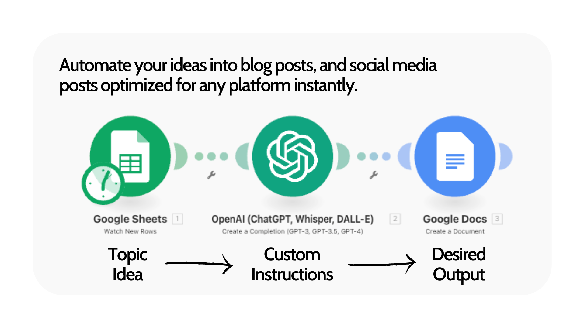 Leveraging AI technology doesn’t have to mean you sacrifice authenticity and originality. Taking advantage of automation provides you with more control over your time! Have a look at some of the automated workflow examples. We cater our strategies to your unique business needs, and the tech stack you already utilize.